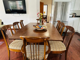 It is fully furnished with a Queen bed, end tables, lamps, and sitting furniture in each of the 5 large bedrooms, elegant living/dining furniture, and a comprehensively outfitted chef's kitchen with stainless steel appliances, crockery & silverware, pots/bowls, utensils (coffeemaker, blender, etc). The laundry room features a commercial-size new washer/dryer set.
